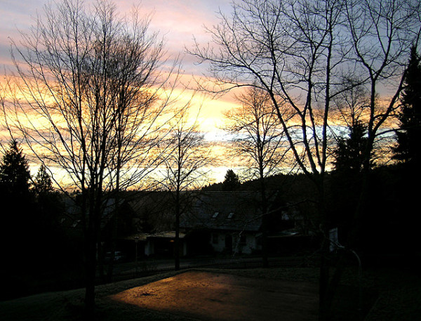 某天早上8点准时走出房间下楼吃早饭,看到窗外的朝阳,觉得好漂亮,所以马上拿着相机出去拍下来了