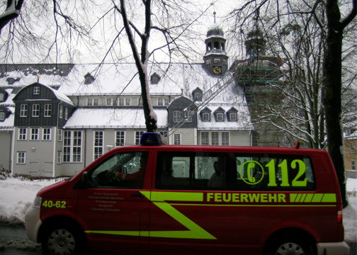 15.一辆消防局的车(112)飘过,顺势抓拍了一下,背后是一个正在装修的大教堂
