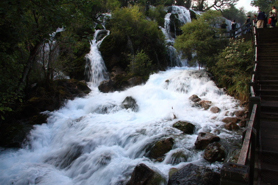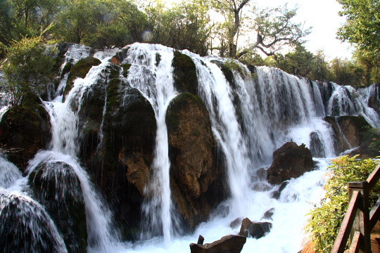 PART Ⅴ 再往下走,就到了整个行程中我最最期盼的景点——珍珠滩瀑布。瀑布底下溅起来的水气很多,UV镜上瞬间就布满了细小的水滴,第一张图的右上角上就可以看到有明显的痕迹,但是拍完看看感觉又有了那么点意境。瀑布用慢速快门拍,别人用三脚架,我懒得架架子,时间没那么多呀,整个行程跟赶鸭子似的,干脆手持算了,好在广角加上防抖,还在安全快门范围内,站在水气中拍了N多张,拍完的时候衣服都湿了……