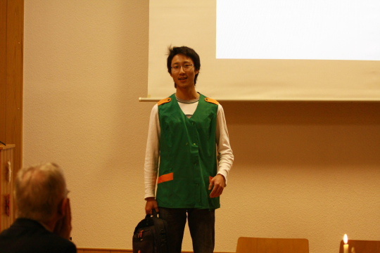 Ⅸ 看完了表演,安静下来听牧师讲道了~~饶牧师来头可不小阿,从小大陆长大,后来到了台湾,台湾青年团契发起人,《海外校园》杂志发行人。而且14年前就到过德国,之后每年都回来德国巡回布道,12年前就到过克劳,那会这里都还没有多少华人……昨天早上我们的德国牧师在主日的时候也说,这个牧师虽然70了,但是依旧充满了POWER~