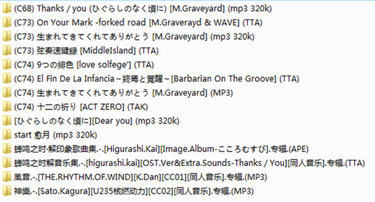 没事整理了一下同人音乐,本来以为下的挺多了,这么一整理才发现,咦?就这么点?呃,好象就这么点。唉,就这么点而已……