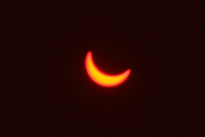 连光晕都变成月牙形了(错觉吗?