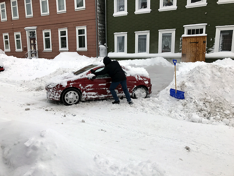 不出意外的话,这是最后一个在克劳度过的冬天了。就仿佛要实现我一个心愿似的,今年冬天下了好大的雪,上一次看到街道两侧堆成这样的景色已经是好多好多年前的事了…… 清早出门,整个街道都被白色覆盖了。 路旁的雪已经被堆到人这么高了。 教会门前的雪堆~ 屋檐上吓人的冰锥…… 克劳名产——小汽车冰淇淋 轮胎在光滑的地面摩擦摩擦~~——路上遇见有人在推车,于是我们帮着救人于冰雪之中:D 这里曾经有一辆车:P 最后一次记录这里的冬季景色了……