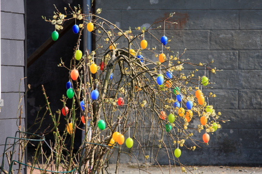复活节期间,家家户户门口的小树上都挂满了彩蛋,庆祝这个伟大的节日~